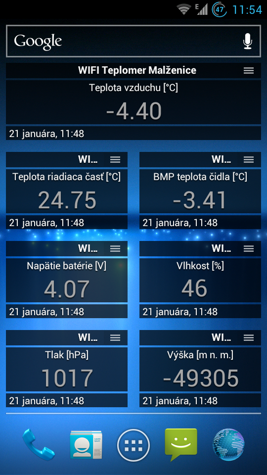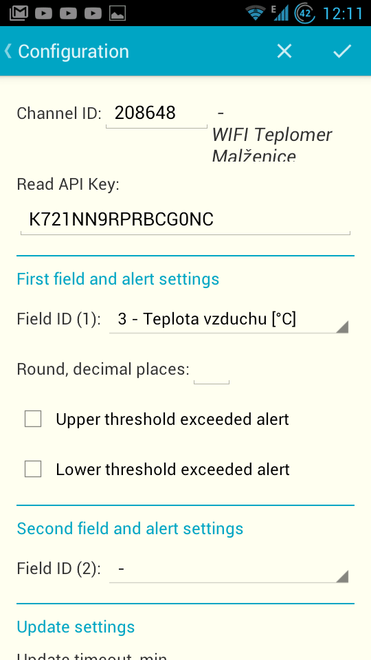 Teplotu možno mať stale pri sebe pomocou android aplikacie IoT ThingSpeak monitor widget.